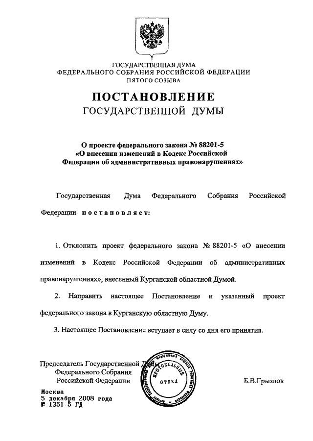 ПОСТАНОВЛЕНИЕ ГД ФС РФ от 05.12.2008 N 1351-5 ГД