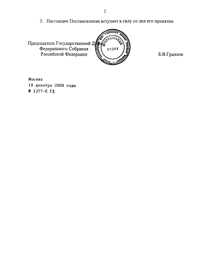 ПОСТАНОВЛЕНИЕ ГД ФС РФ от 10.12.2008 N 1377-5 ГД