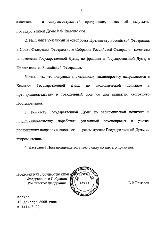 ПОСТАНОВЛЕНИЕ ГД ФС РФ от 12.12.2008 N 1414-5 ГД