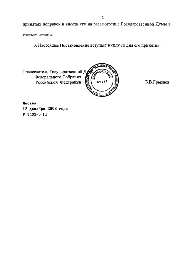 ПОСТАНОВЛЕНИЕ ГД ФС РФ от 12.12.2008 N 1403-5 ГД