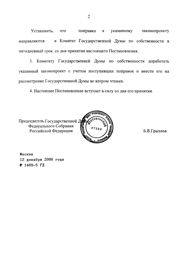 ПОСТАНОВЛЕНИЕ ГД ФС РФ от 12.12.2008 N 1409-5 ГД