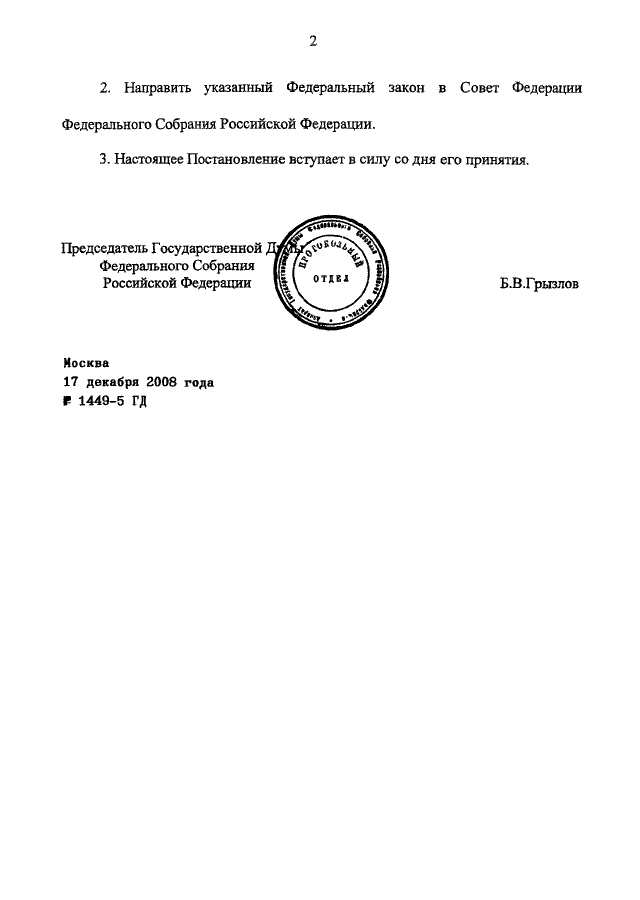 ПОСТАНОВЛЕНИЕ ГД ФС РФ от 17.12.2008 N 1449-5 ГД