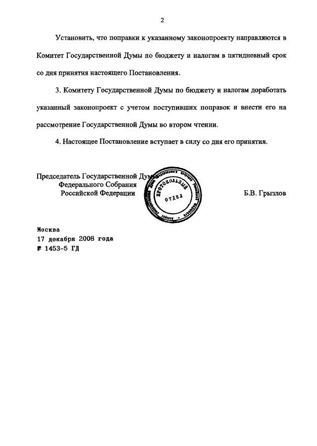 ПОСТАНОВЛЕНИЕ ГД ФС РФ от 17.12.2008 N 1453-5 ГД