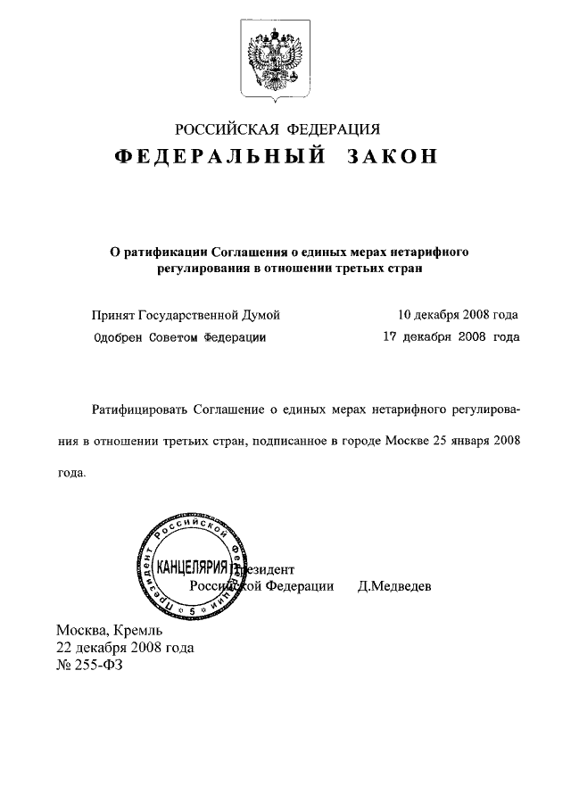 ФЕДЕРАЛЬНЫЙ ЗАКОН от 22.12.2008 N 255-ФЗ
