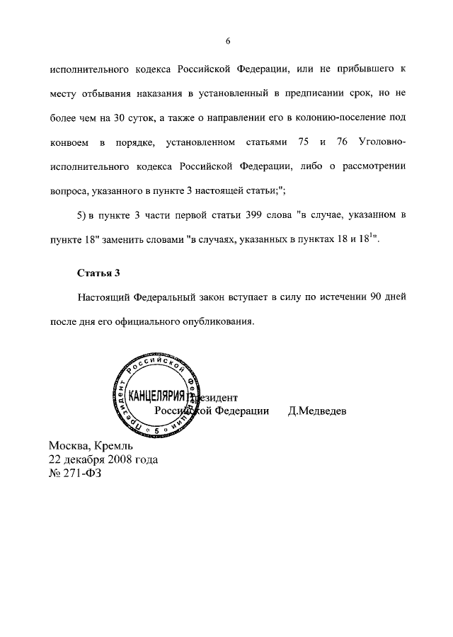 ФЕДЕРАЛЬНЫЙ ЗАКОН от 22.12.2008 N 271-ФЗ