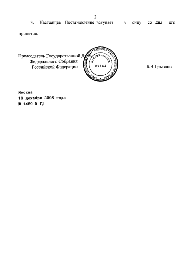 ПОСТАНОВЛЕНИЕ ГД ФС РФ от 19.12.2008 N 1460-5 ГД