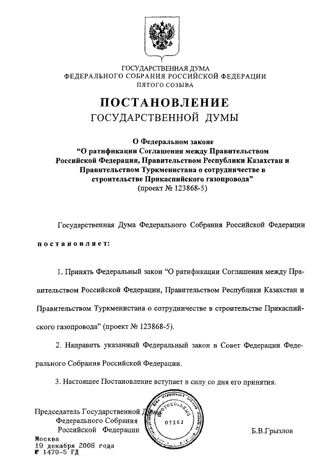 ПОСТАНОВЛЕНИЕ ГД ФС РФ от 19.12.2008 N 1470-5 ГД