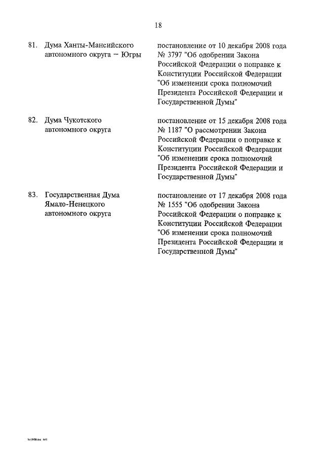 "ОБ УСТАНОВЛЕНИИ РЕЗУЛЬТАТОВ РАССМОТРЕНИЯ ЗАКОНОДАТЕЛЬНЫМИ (ПРЕДСТАВИТЕЛЬНЫМИ) ОРГАНАМИ ГОСУДАРСТВЕННОЙ ВЛАСТИ СУБЪЕКТОВ РОССИЙСКОЙ ФЕДЕРАЦИИ ЗАКОНА РОССИЙСКОЙ ФЕДЕРАЦИИ О ПОПРАВКЕ К КОНСТИТУЦИИ РОССИЙСКОЙ ФЕДЕРАЦИИ "ОБ ИЗМЕНЕНИИ СРОКА ПОЛНОМОЧИЙ ПРЕЗИДЕНТА РОССИЙСКОЙ ФЕДЕРАЦИИ И ГОСУДАРСТВЕННОЙ ДУМЫ"