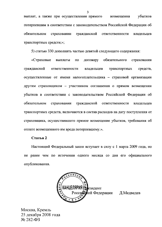 ФЕДЕРАЛЬНЫЙ ЗАКОН от 25.12.2008 N 282-ФЗ