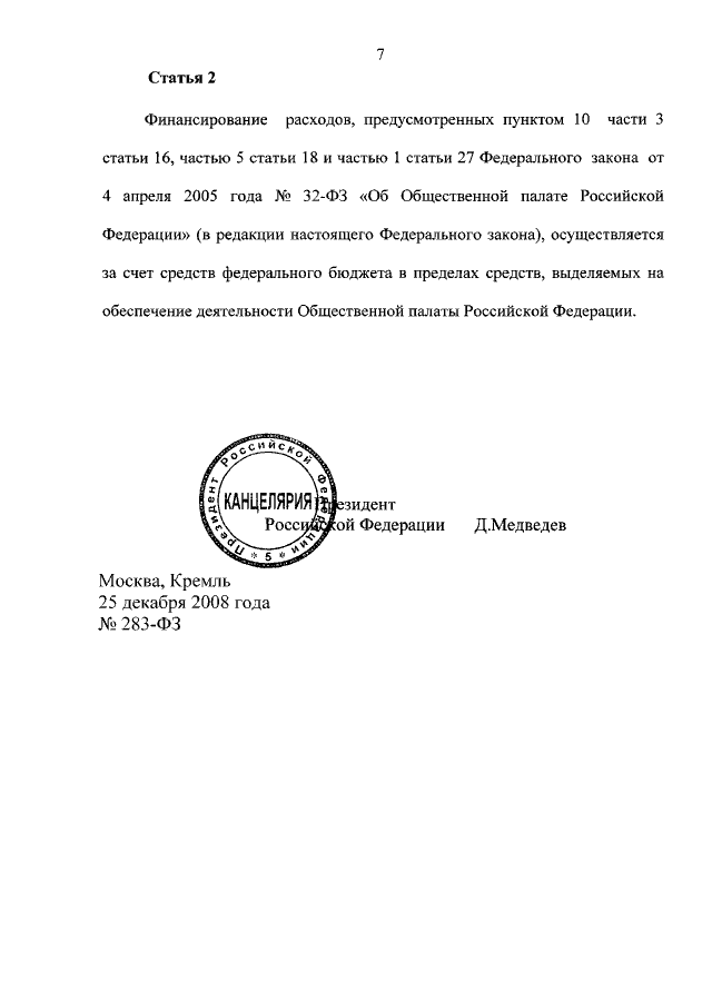 ФЕДЕРАЛЬНЫЙ ЗАКОН от 25.12.2008 N 283-ФЗ