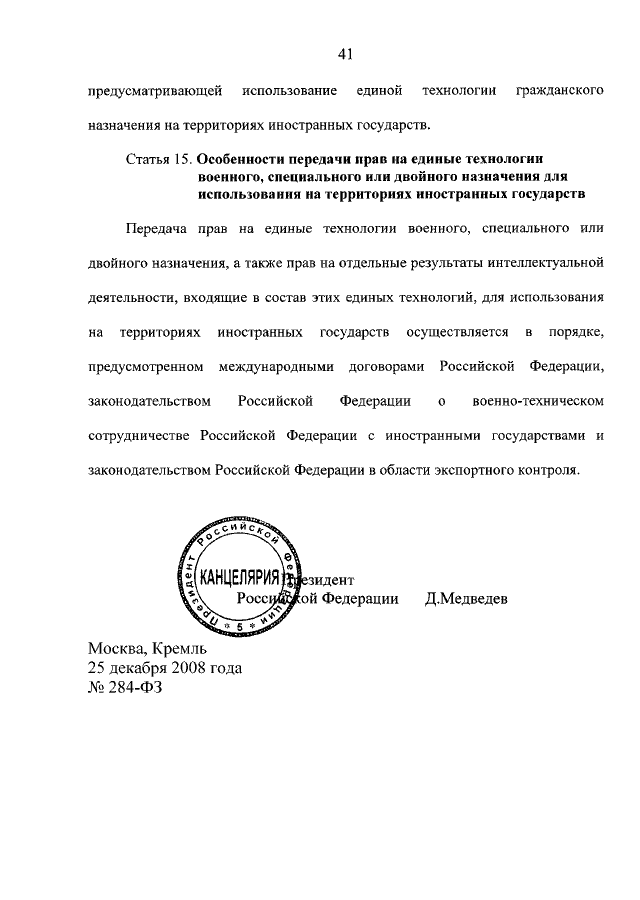 ФЕДЕРАЛЬНЫЙ ЗАКОН от 25.12.2008 N 284-ФЗ