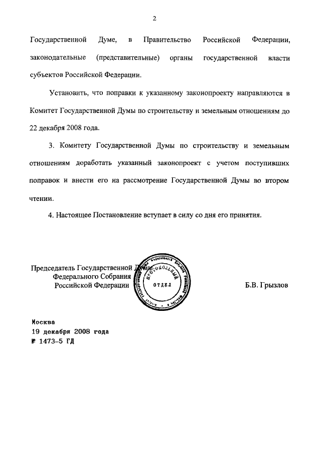 ПОСТАНОВЛЕНИЕ ГД ФС РФ от 19.12.2008 N 1473-5 ГД