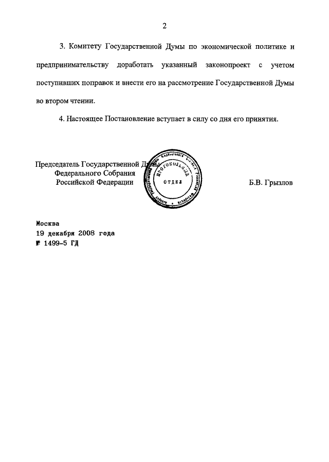 ПОСТАНОВЛЕНИЕ ГД ФС РФ от 19.12.2008 N 1499-5 ГД