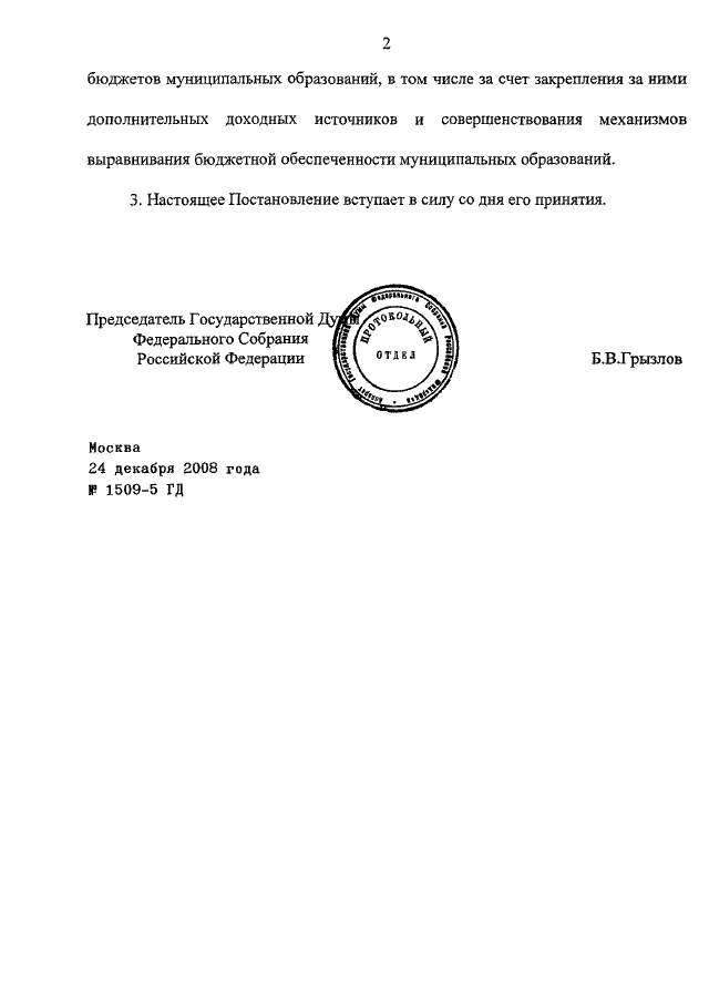 ПОСТАНОВЛЕНИЕ ГД ФС РФ от 24.12.2008 N 1509-5 ГД