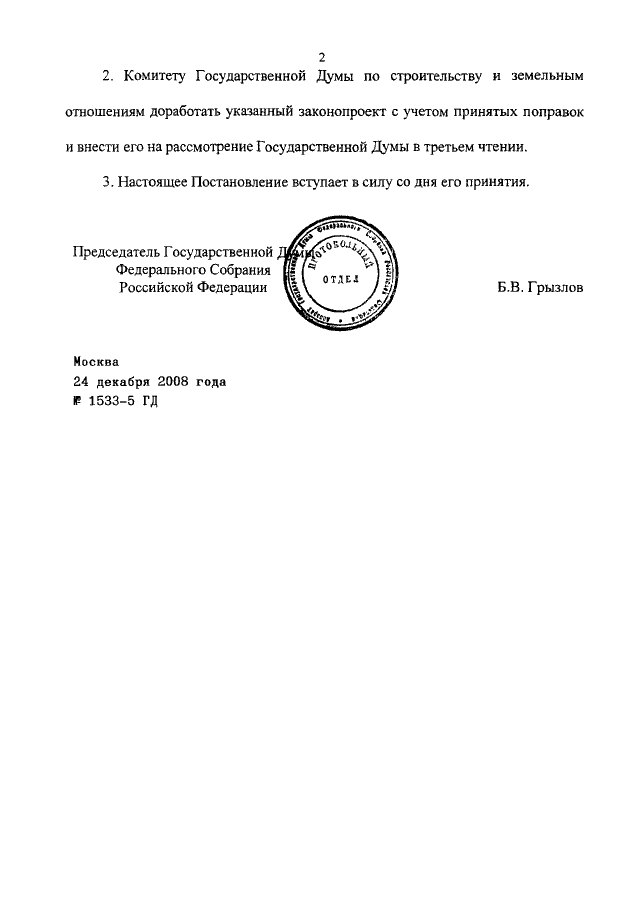 ПОСТАНОВЛЕНИЕ ГД ФС РФ от 24.12.2008 N 1533-5 ГД