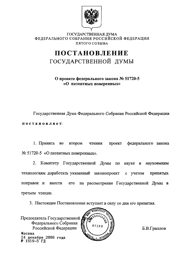 ПОСТАНОВЛЕНИЕ ГД ФС РФ от 24.12.2008 N 1519-5 ГД