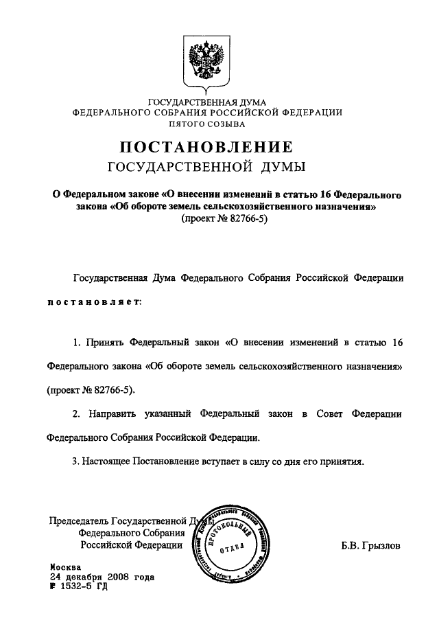 ПОСТАНОВЛЕНИЕ ГД ФС РФ от 24.12.2008 N 1532-5 ГД