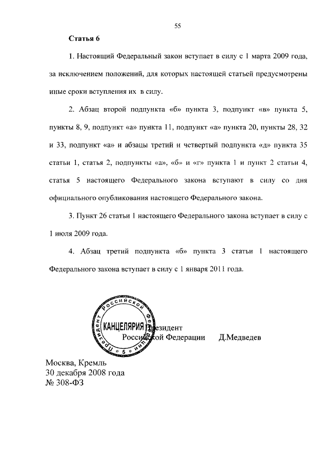 ФЕДЕРАЛЬНЫЙ ЗАКОН от 30.12.2008 N 308-ФЗ
