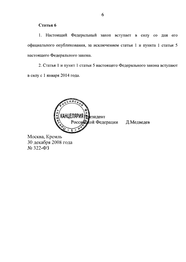 ФЕДЕРАЛЬНЫЙ ЗАКОН от 30.12.2008 N 322-ФЗ