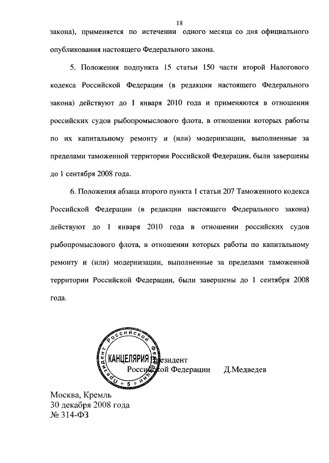 ФЕДЕРАЛЬНЫЙ ЗАКОН от 30.12.2008 N 314-ФЗ