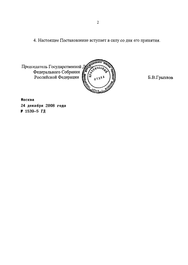 ПОСТАНОВЛЕНИЕ ГД ФС РФ от 24.12.2008 N 1539-5 ГД
